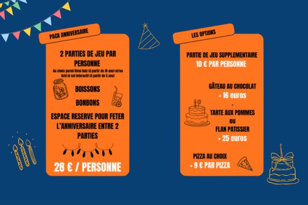 💶 A partir de 29 € / Formule anniversaire dès 38 €